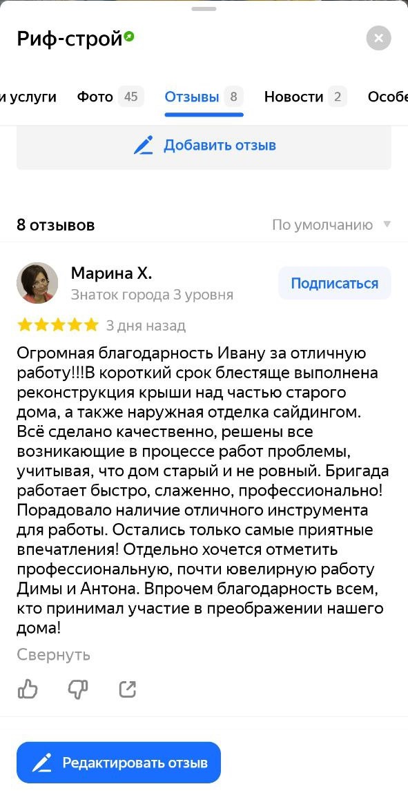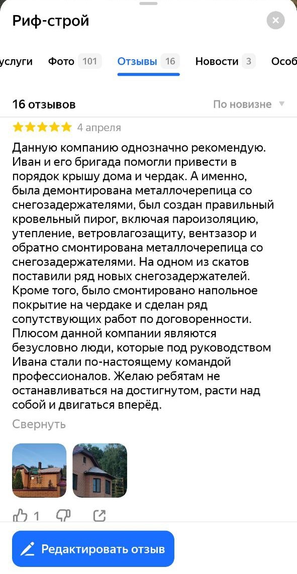Мы привыкли называть себя «молодой компанией», однако, наш опыт в строительстве исчисляется уже двухзначными числами. Начали в прекраснейшем городе – Санкт-Петербурге, где построили более 10 домов, отремонтировали более 20 крыш и участвовали в реконструкции кровли музея Эрмитажа и особняка Доберта в Петроградской районе на Большой Бушкарской улице. В 2018 году мы перенесли свой офис в Столицу больших возможностей. Тут уже тоже успели отличиться, как в индивидуальном строительстве, так и при реконструкции объектов культурного наследия. Например, проводили работы в особняке на Большом Хохловском переулке, участвовали в реконструкции оранжерей в музее особняке Архангельское. При этом, несмотря на нашу любовь к возрождению культуры, основной сферой деятельности нашей компании, естественно, является строительство и ремонт крыш. Оперативно выезжаем, замеряем, считаем и делаем. Наш слоган: «Быстро! Качественно! Надежно!»